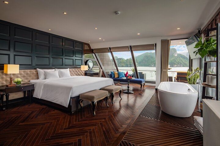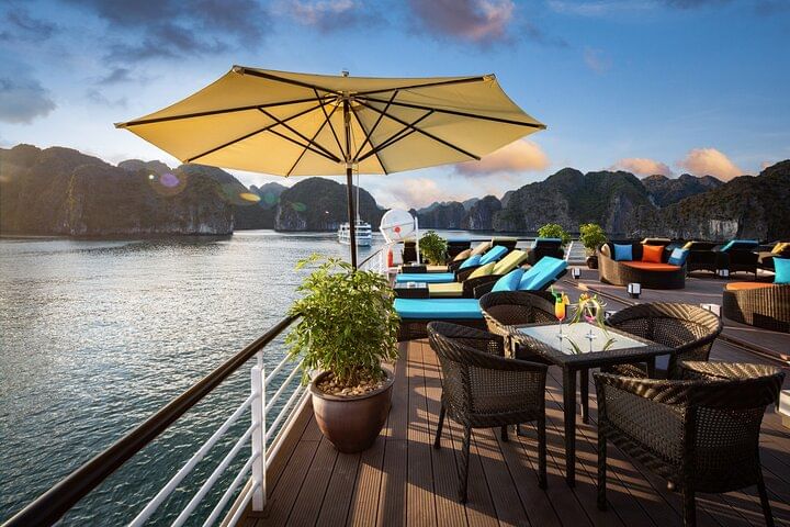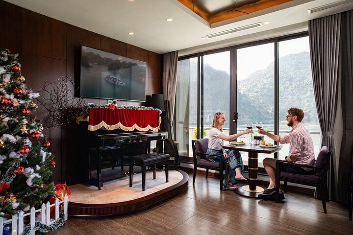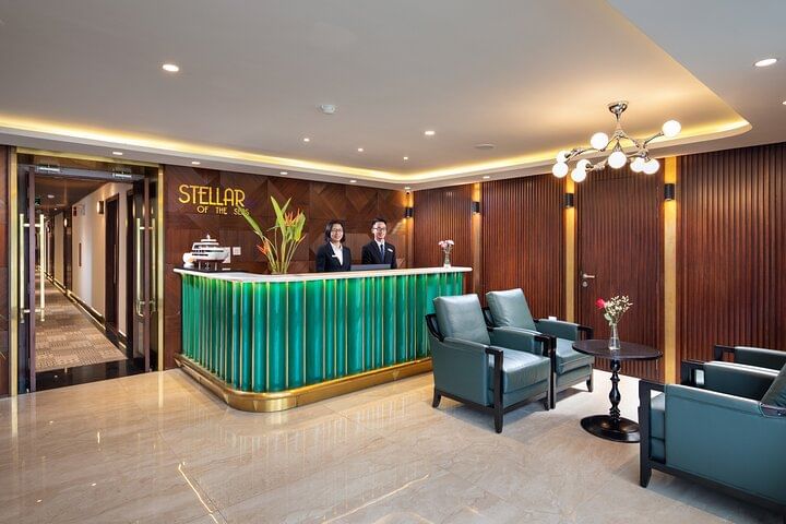 Embark on an unparalleled journey with Stellar of the Seas cruise, redefining contemporary luxury in Halong Bay. Our meticulously crafted itinerary promises an unforgettable experience, blending safety, elegance, and attentive service. Indulge in twenty-two spacious rooms adorned with luxurious amenities, complemented by exquisite dining options and panoramic views at the bar. Explore our wine and cigar cellar, golf club, and seasonal swimming pool, or unwind at the beauty spa & massage center. Families will delight in our children's playground. Experience personalized service tailored to your preferences, ensuring a truly unique and memorable adventure aboard Stellar of the Seas.