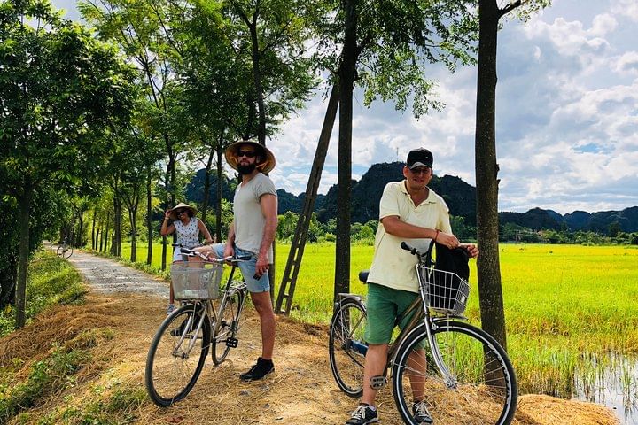 Ninh Binh full day with 3 must-see places: Hoa Lu Ancient Temple - Mua Cave - Boat trip in Tam Coc - cycling in countryside.