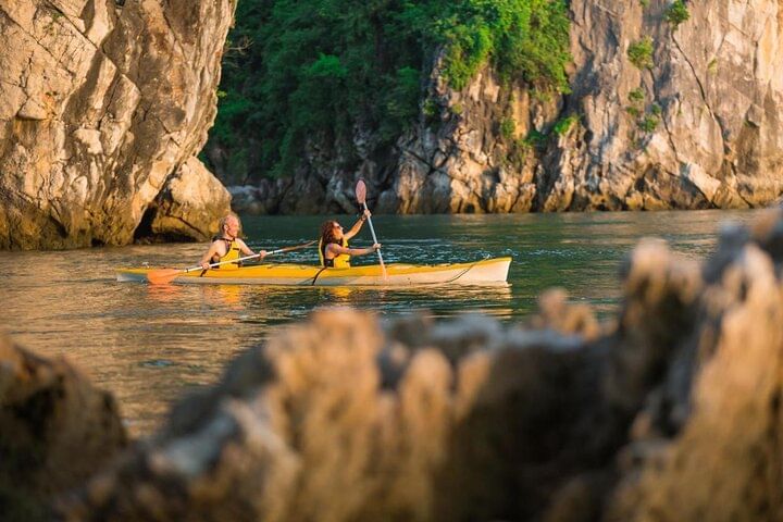 Highlights: Some of the highlights you will experience on your 2-day Halong and Bai Tu Long Bay cruise is free pick-up/drop-off from your hotel in the Hanoi Old Quarter; kayaking, beach & swimming, Thien Canh Son cave, and tai chi in the early morning.