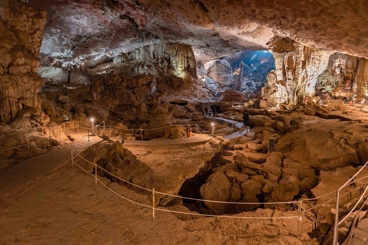 Visiting Surprising cave (one of the most beautiful dry cave in Halong Bay) to visit thousands of stalagmites and stalactites with different shapes from the bottom up to the cave ceiling